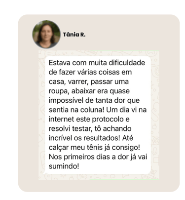 Você vai receber todo passo a passo do Protocolo Coluna Zero Dor dentro da plataforma.